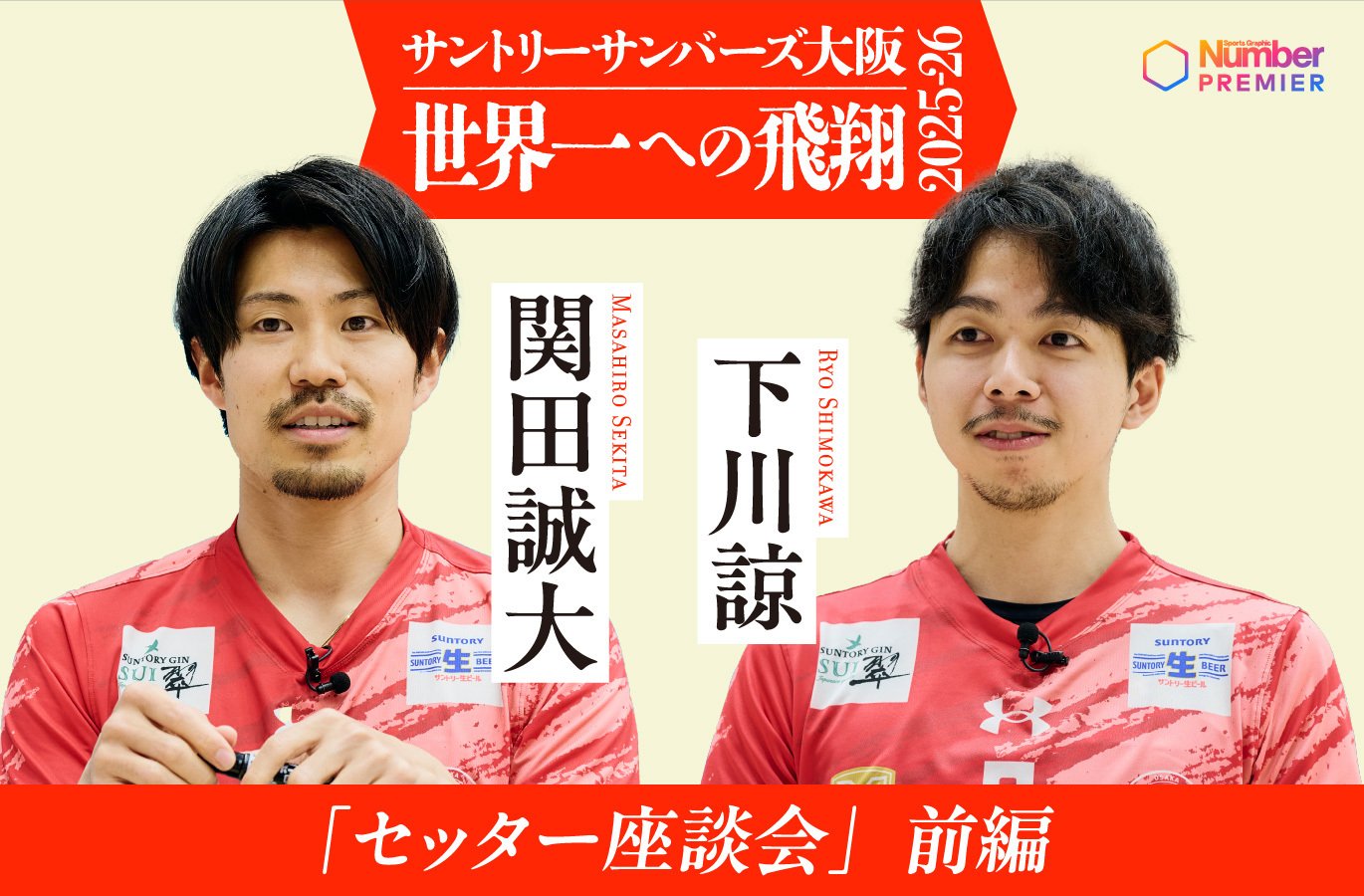 第15回は、『セッター対談』前編。東京、パリ五輪日本代表で、今季サンバーズに加入した関田誠大選手と、サンバーズ2年目の下川諒選手に、お互いの印象や2人の距離感について語り合っていただきました。インタビュアーはライターの米虫紀子さんです。《セッター対談後編も併せてご覧ください》