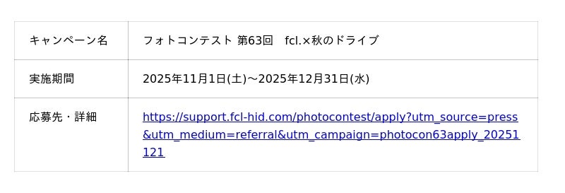 https://support.fcl-hid.com/photocontest/contestants/62-autumn-2025?utm_source=press&utm_medium=referral&utm_campaign=photocon62result_20251121第63回フォトコンテスト 開催概要
