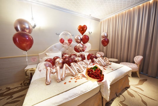 本プランでは、「ダズンローズ」と呼ばれる12本の薔薇の花束と、バルーンアートで華やかに装飾された特別な客室をご用意。