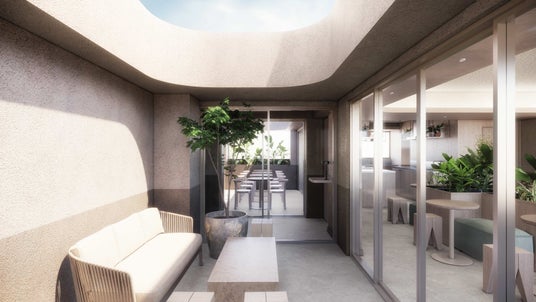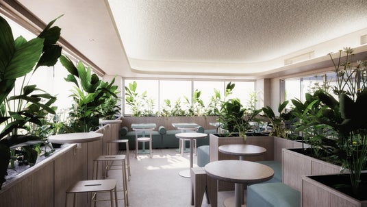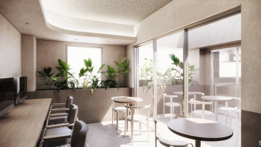 疲れた時は、ガーデンスペースで深呼吸。外部へ植栽が広がっていく、開放感のある空間です。