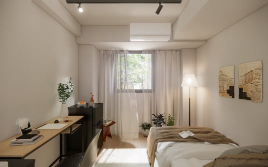 自分だけの「暮らし心地」を表現できる個室空間は、自由に配置を変えられる家具付き。シャワーや洗面台など、身支度を整える設備も揃っています。バスタブ付きのお部屋もあり、ほっと安らぐ自分だけの空間を楽しんでいただけるように工夫しました。