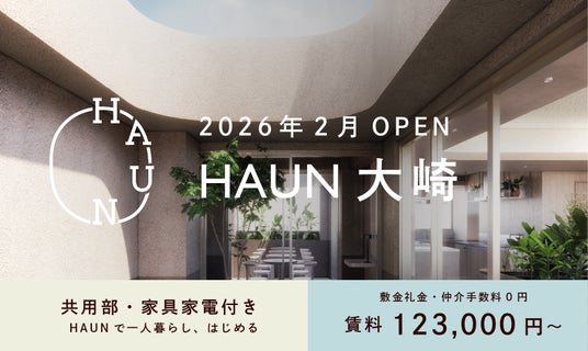 HAUN株式会社(東京都港区六本木6-2-31、代表:吉嶋法生)は、暮らし心地にこだわるコリビング*賃貸住宅「HAUN(ハウン)」を展開しています。このたび、都心近接のアクセス性と、働きやすさ・暮らしやすさがちょうどよく調和した、20~30代に人気の「大崎・五反田エリア」に、都市に暮らす新しいかたちを提案するコリビング*賃貸「HAUN 大崎」を2026年2月1日(日)に開業することをお知らせします。