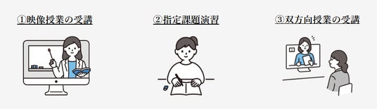 本コースは、「映像配信型授業」と「少人数双方向授業」を組み合わせた講座です。映像配信型授業で知識をインプットしたのち、少人数双方向授業で知識の定着や応用力を確認します。
