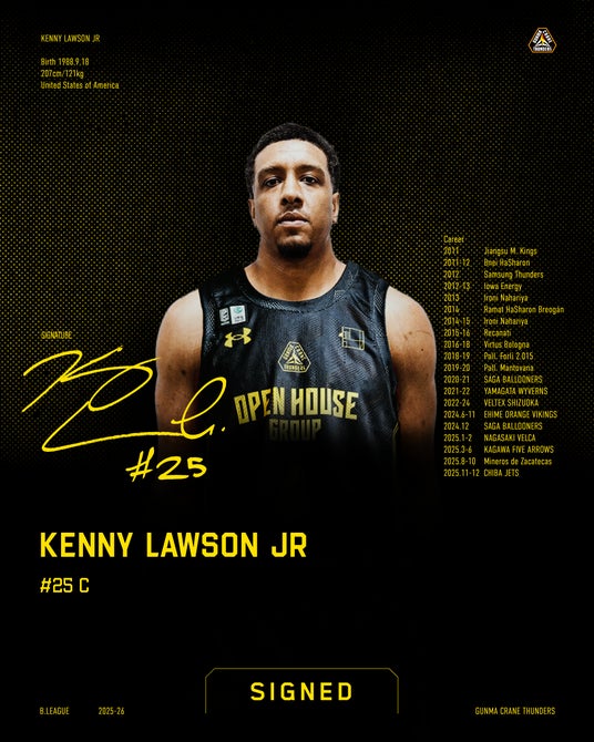 この度、群馬クレインサンダーズでは、#25 ケニー・ローソン・ジュニア選手とのBリーグ2025-26シーズンの選手契約(新規)が基本合意に達しましたのでお知らせいたします。
