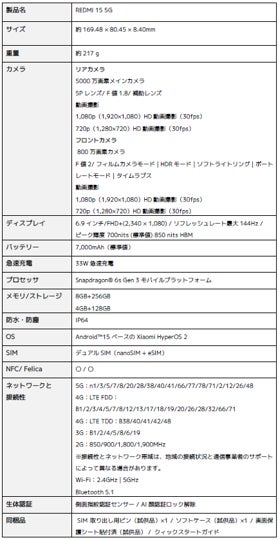 ・対象者:上記、購入期間中に以下の販路でREDMI 15 5G(オープン マーケットモデル)をご購入されたお客様 *ソフトバンクモデルは対象外です