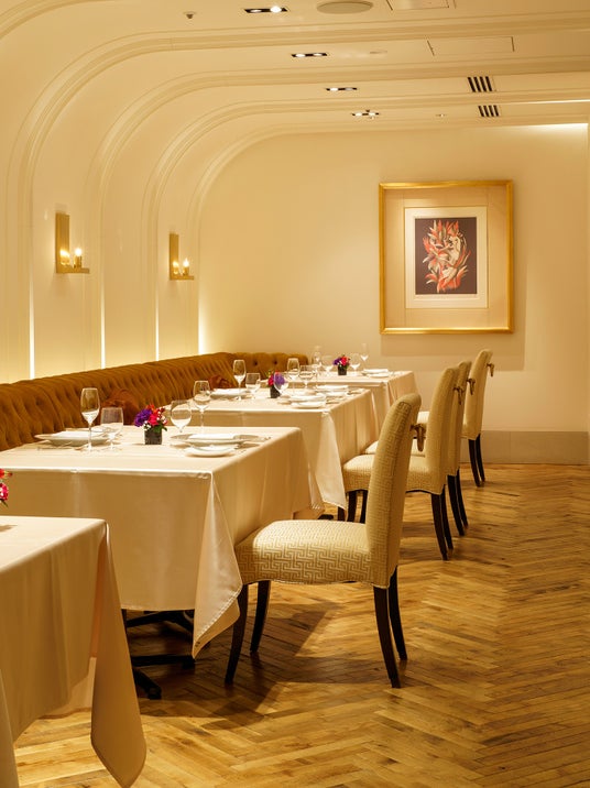 【フレンチレストラン ル・シャンドール】九州の豊かな土壌を連想させる店内のゴールドを基調としたインテリアから、金色の(d’Or)畑(Champ)と名付け、その豊穣な土地で育った素材を中心に、新たな発想で創るモダンフレンチを提供しています。