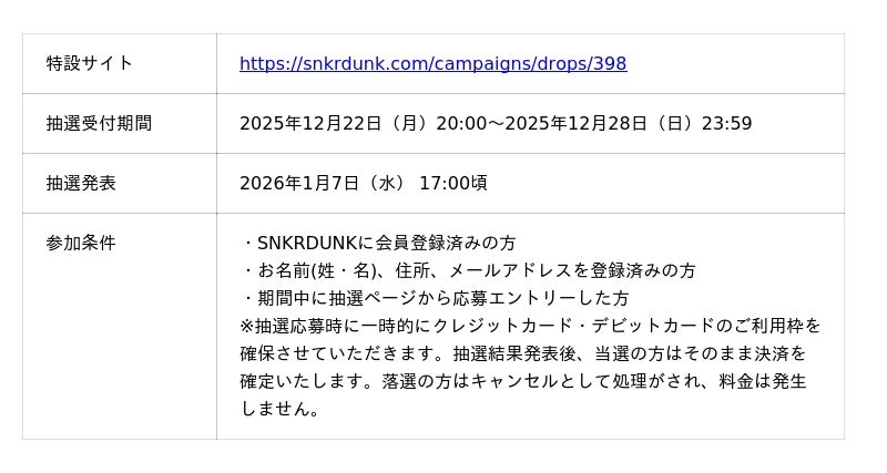 詳細は、スニダンアプリ内特設サイトをご確認ください。