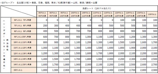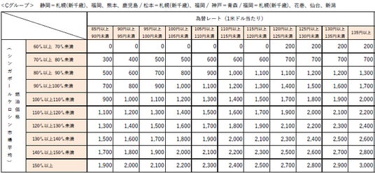 なお、燃油特別付加運賃は、シンガポールケロシン市況価格および為替レートの変動に応じて、 1ヶ月毎に見直しております。