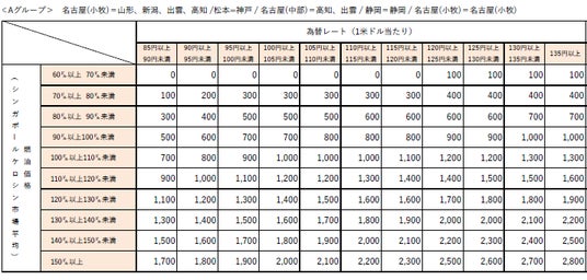 2026年1月発券分につきましては、2025年11月のシンガポールケロシン市況価格平均が1バレル当たり93.1米ドル、為替レートが1米ドル当たり155.1円であったことから、以下の金額を適用させていただきます。