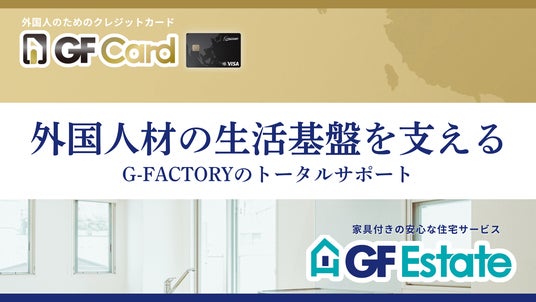 G-FACTORY株式会社は、特定技能をはじめとする外国人材の生活環境整備と企業での定着支援を目的に、社宅支援サービス「GF Estate」と外国人専用クレジットカード「GF Card」を組み合わせた生活支援パッケージの提供を開始します。