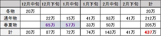 【リカバリー在庫復活!】12~2月437万着入荷/既存客に春夏物65万着を12月末先行販売/1月末から全店1500着陳列