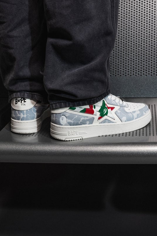 さらに、ABC CAMO グレーを採用した特別仕様の「BAPE STA(TM) ICON」スニーカーと、同デザインのアクセサリーがラインアップを完成させます。
