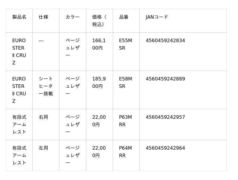 機能性と快適性を兼ね備えたコンフォートリクライニングシート「EUROSTERII CRUZ」に限定色ベージュレザーが新登場!!