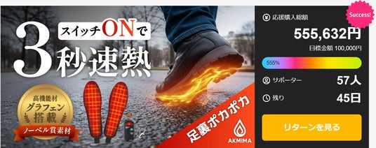 Makuakeで先行販売開始。ノーベル化学賞素材「グラフェン」搭載。履いた瞬間1秒で温まる次世代ヒートインソール「AKMINA(アクミナ)」日本初上陸