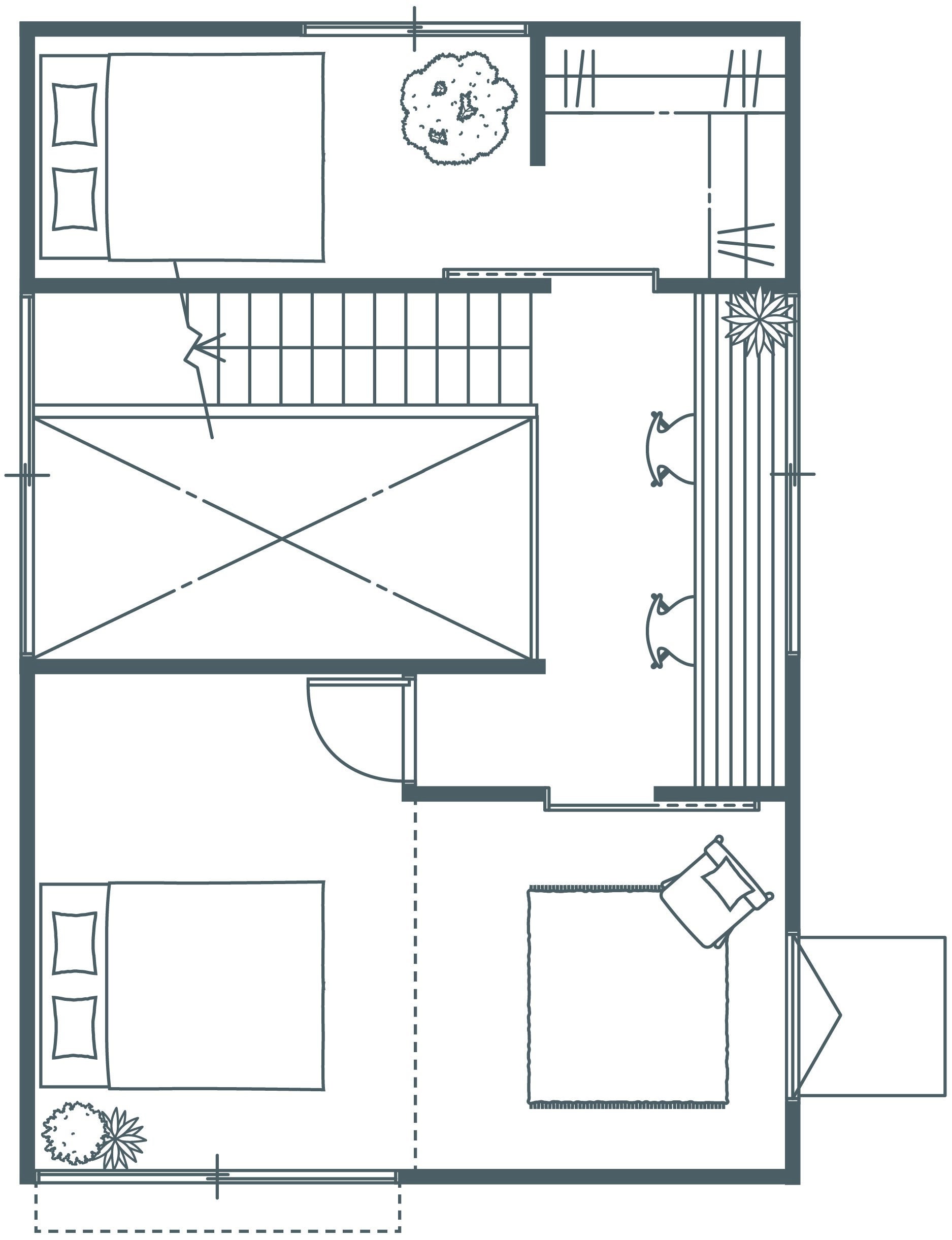 2. 「シェア空間」と「プライベート空間」が緩やかにつながるゾーニング