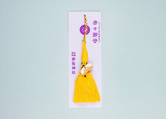 ※「房々御守」は、小さな櫛のモチーフと、髪の毛に見立てた房がゆらゆらと揺れるユニークなお守りです。