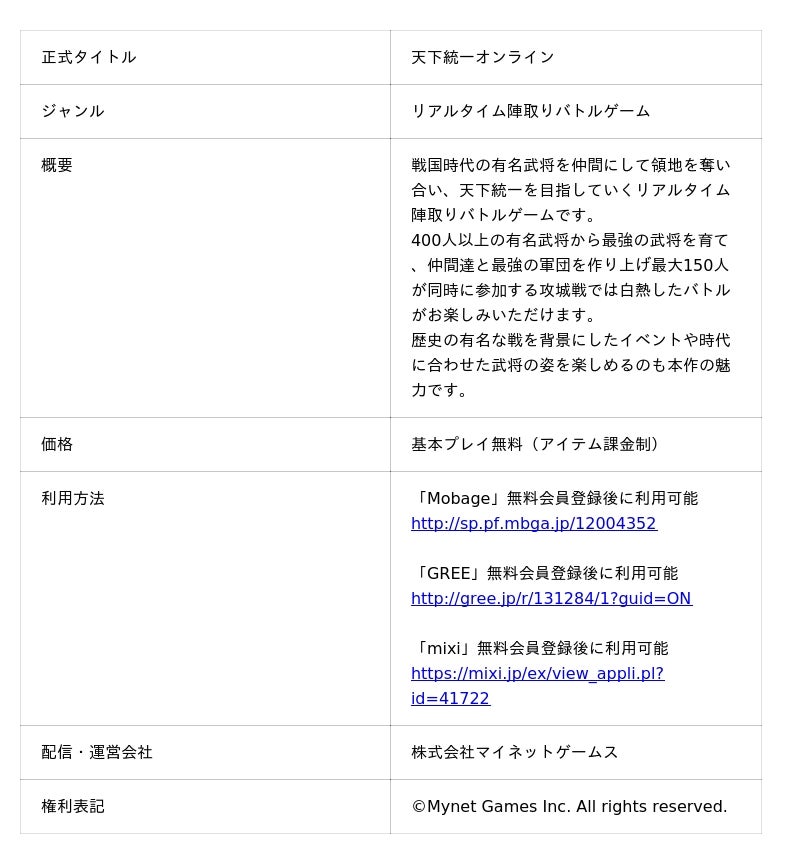マイネットゲームス及び「天下統一オンライン」は、ユーザーの皆さまのご愛顧に感謝し、今後も皆さまに長くワクワクをお届けできるようさらなる歩みを続けてまいります。