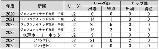 ラビットキッカーズ - 松戸第六中 - 修徳高 - ジェフユナイテッド千葉 - 水戸ホーリーホック(期限付き移籍) - ジェフユナイテッド千葉 - いわきFC