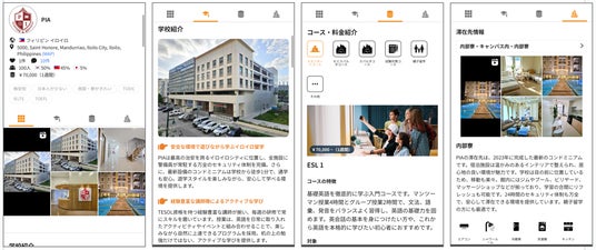 ネイティブキャンプ留学では、ユーザーが必要な情報を分かりやすく把握できるよう、常に丁寧で明確な情報提供を心がけています。PIAの詳細情報は、以下の4つのカテゴリーに分けて掲載しており、知りたい情報を的確にお届けします。