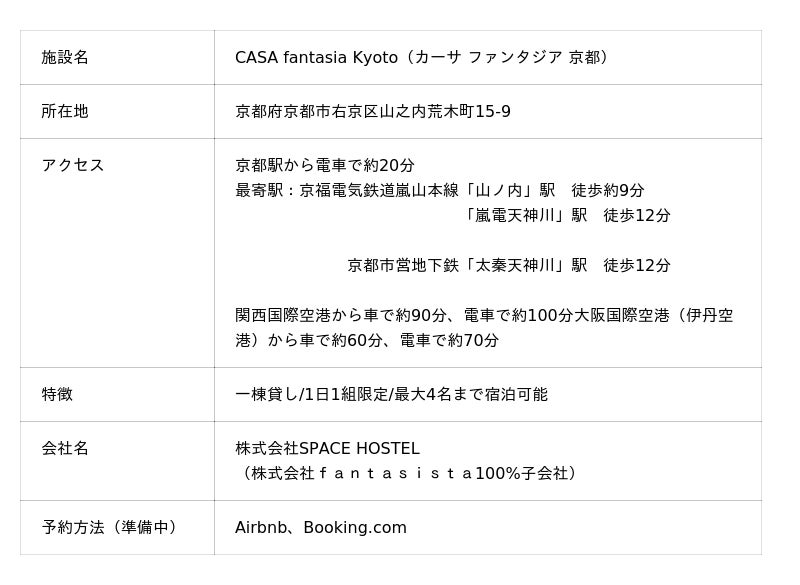 年々増加する空き家を、新たなかたちで活かすことを目的に誕生した「CASA fantasia Kyoto