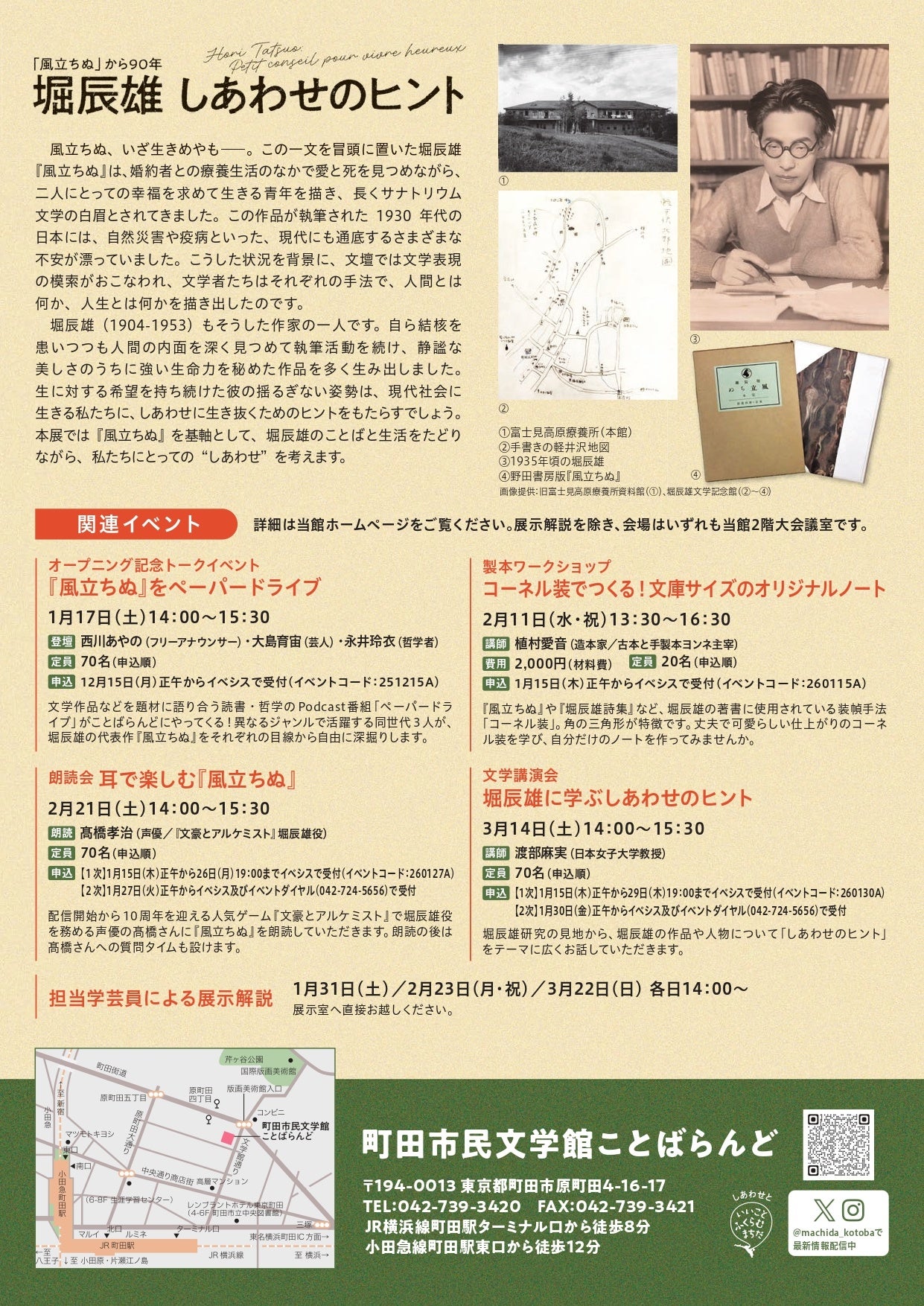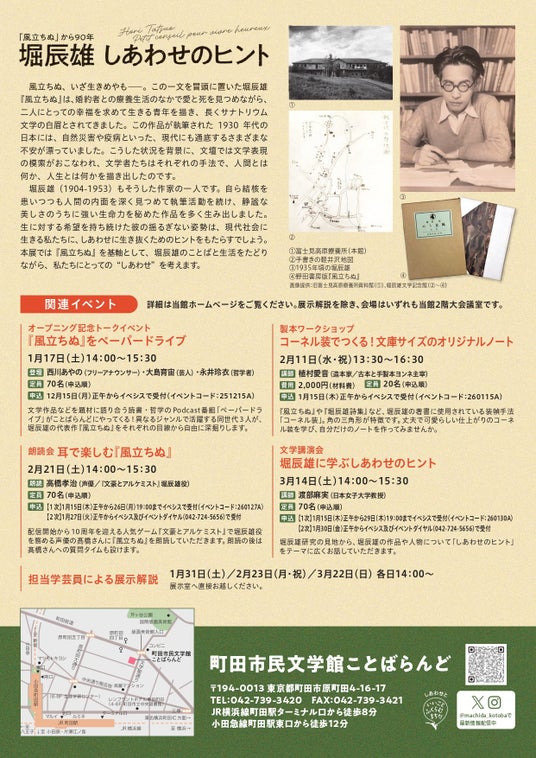 【東京都町田市】「『風立ちぬ』から90年 堀辰雄 しあわせのヒント展」の開催について