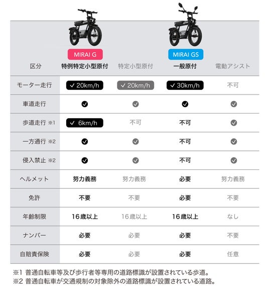 COSWHEEL MIRAI Gシリーズは、特定小型原付「MIRAI G」と一般原付「MIRAI GS」の2つの車両区分で同時展開予定。乗り手の用途や走行環境に合わせて選択が可能です。