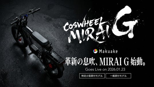 Makuake史上No.1のBIGプロジェクトへ、COSWHEEL MIRAI Gシリーズ2機種を一般販売価格税込253,000円の50%off税込137,000円から同時先行応援販売スタート