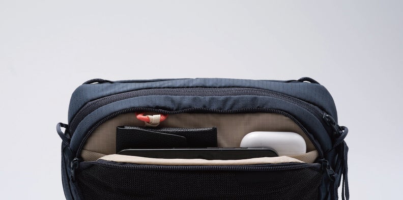 メインコンパートメントには、複数のポケットを搭載。開口部が大きく開く構造で、バッグインバッグとして使用できるCubeや新製品のCore Slingと組み合わせても使える設計です。