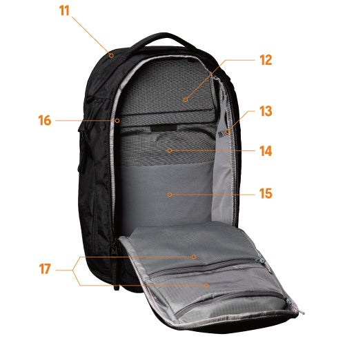 ラップトップコンパートメントは、最大17インチのノートパソコンを保護しながら、テックツールをひとまとめに収納できます。ストレッチ素材のポケットは拡張性があり、かさばる充電器や大きなアイテムも収納できます。