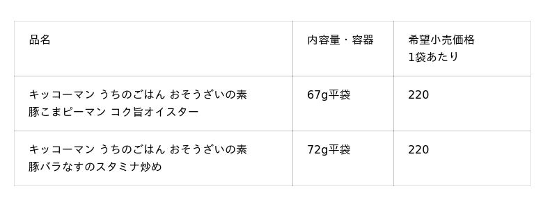 キッコーマン食品株式会社は、2 月2 日に、「キッコーマン うちのごはん おそうざいの素」シリーズの新アイテム「豚こまピーマン コク旨オイスター」と「豚バラなすのスタミナ炒め」を全国で新発売します。