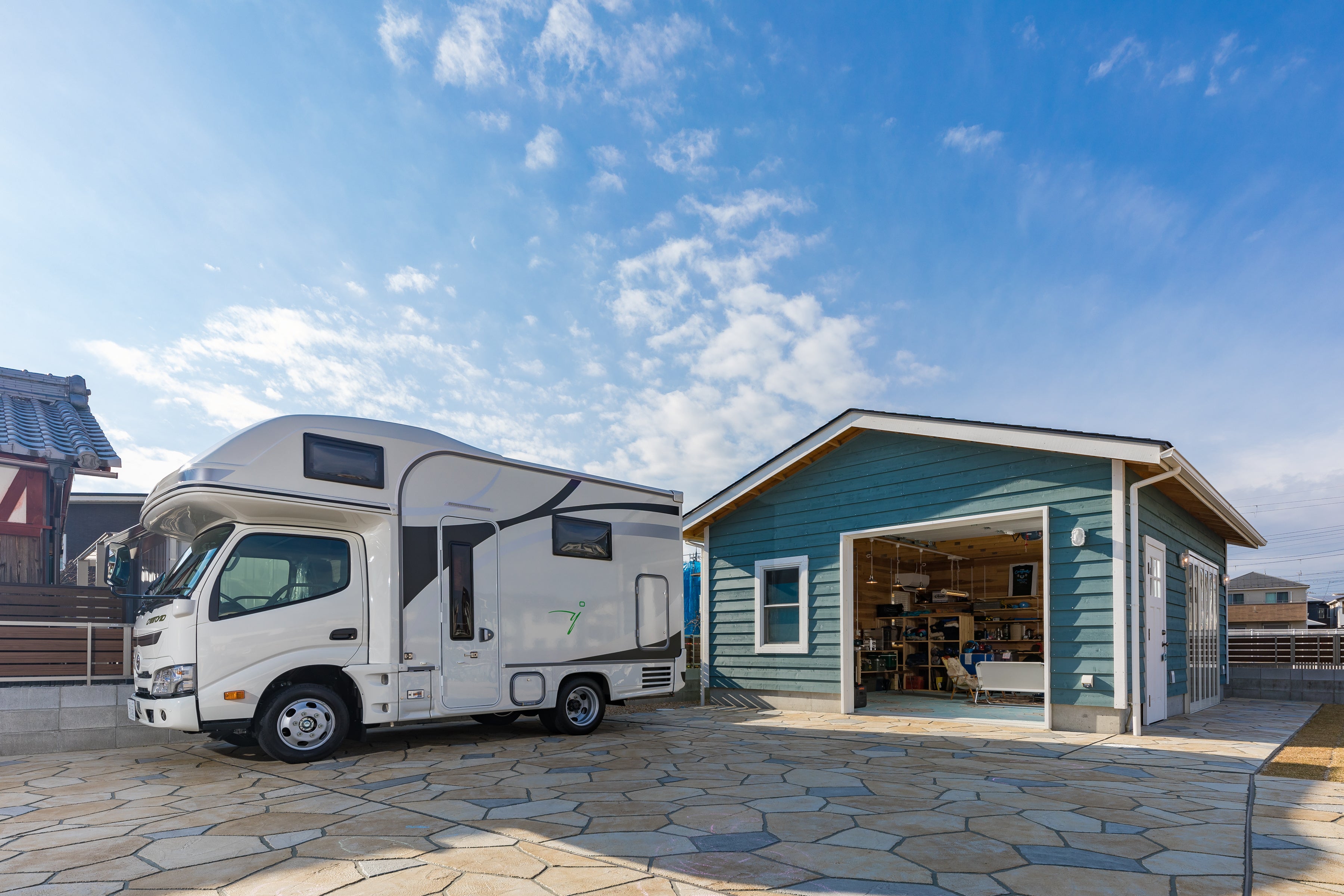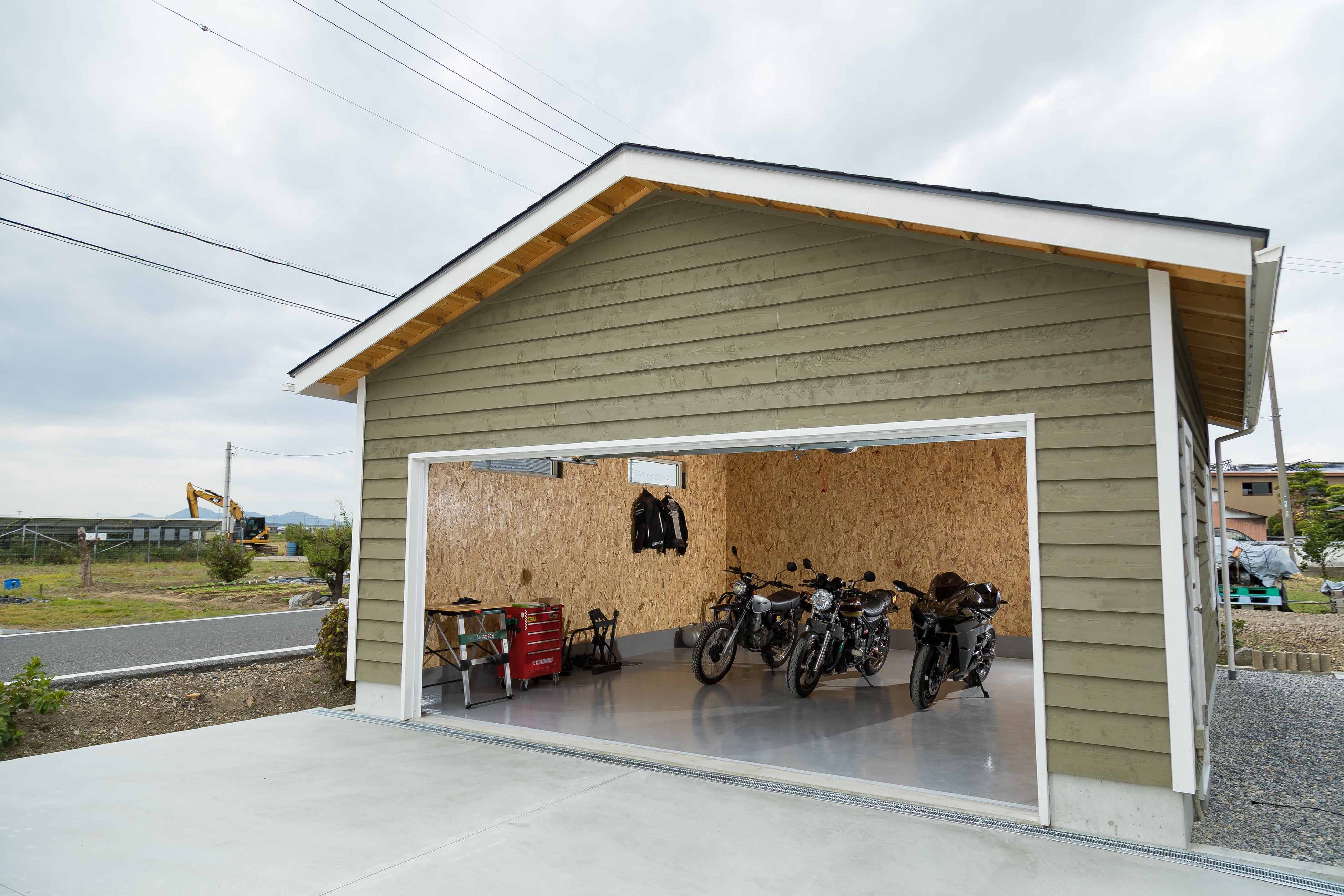 弊社のガレージは木造枠組み壁工法(以下2×4工法)を採用しており、内部の柱がなく大空間が取れる構造となっております。耐震性にも優れ、また木造であることで鉄骨では難しい後々のDIYも容易にでき、自分だけのオリジナルな内装を仕上げることもできます。用途はさまざまで、愛車を守るガレージ、キャンプギアや釣り道具など趣味の収集、保管部屋やおしゃれな店舗にもお使いいただけます。実際にガレージの展示場では大きさや質感、内装やオーバースライダードアの動きなど体感できます。