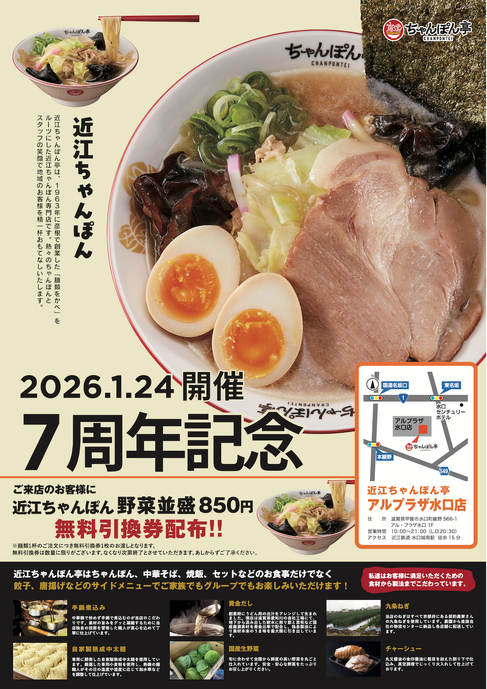 【近江ちゃんぽん亭 アル・プラザ水口店】開店7周年記念「周年祭」開催