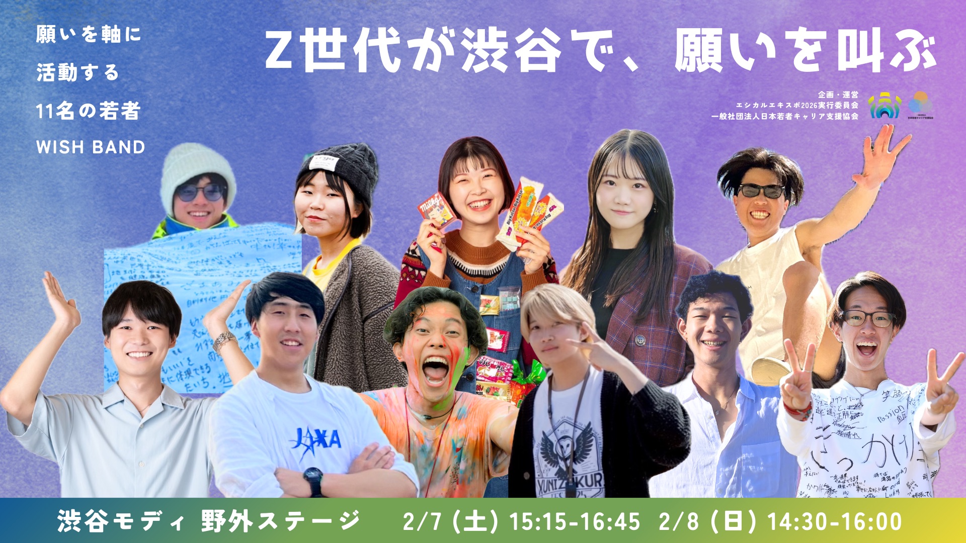 一般社団法人ETHICAL EXPO JAPANと一般社団法人日本若者キャリア支援協会(以下、JYC)は、2026年2月7日(土)~8日(日)、渋谷モディ 1階野外ステージにて、若者の願いや社会に対する想いを繋ぐ『WISH BAND(ウィッシュバンド)』を開催します。