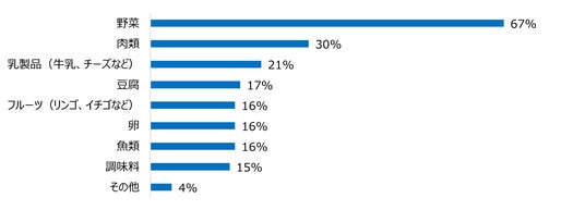 購入した食材を使い切れずに捨ててしまった経験が「よくある」「たまにある」と回答した人は約57%に上り、自炊頻度が増える一方で、多くの人がフードロスを経験している実態が明らかになりました。 さらに、使い切れずに捨ててしまうことが多い食材は、「野菜」が約67%で第1位となりました。