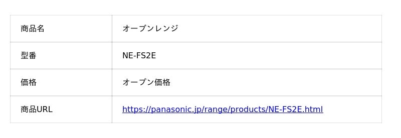 <商品情報>オーブンレンジ NE-FS2E