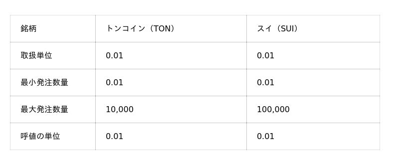 トンコイン(TON)、スイ(SUI)の取扱い開始のお知らせ