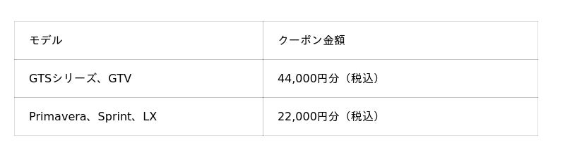 対象モデル / GTSシリーズ、GTV、Primavera、Sprint、LX各モデルの新車※1