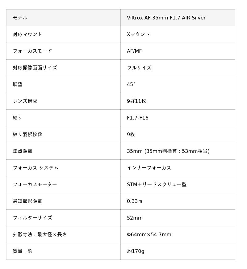 【Viltrox AF 35mm F1.7 AIR Silver富士フィルムXマウント 販売ストア】