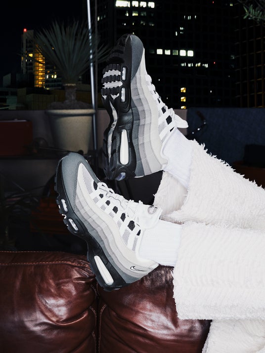 本商品は、1995年のオリジナルモデルを忠実に再現しつつ、リマスターしたAirバブルをヒールに内蔵。踏み出すたびにアイコニックな「95」のクッショニングが感じられ、アッパーには合成皮革と風通しの良いメッシュを、人体構造から着想を得て波状に重ねたデザイン性。アウトソールに刻まれた溝(フレックスグルーブ)が、一日中快適な動きをサポートします。