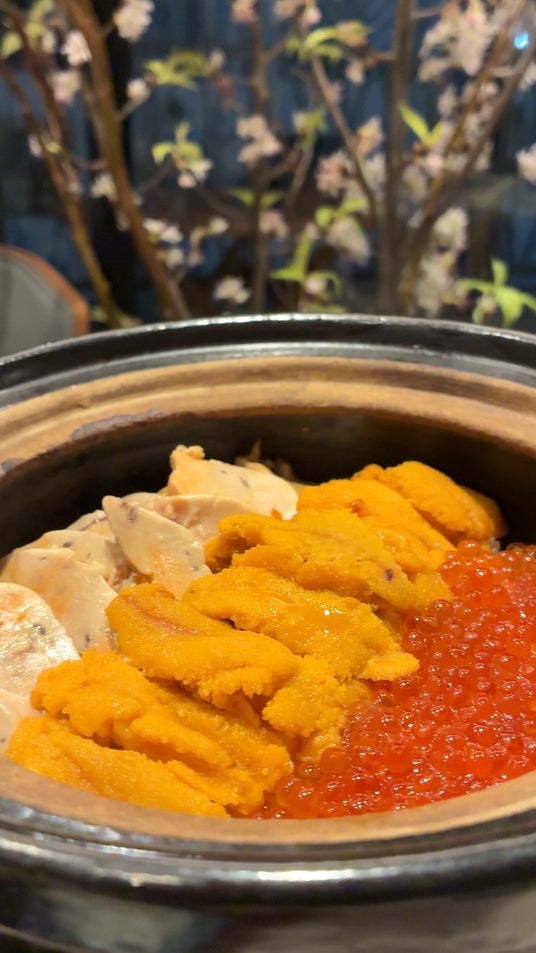 新登場のいくら、うに、あん肝という、まさに“痛風”を覚悟させる豪華食材を、土鍋で炊き上げたご飯の上に惜しげもなく盛り付け完成した【痛風土鍋ご飯】。 クリーミーなあん肝のコク、濃厚なうにといくらの旨味。この究極の贅沢メニューは、ホームページ、各グルメサイトで販売開始しております。ぜひこの禁断の味をご体感ください。