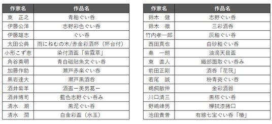 - 内 容:日本工芸会所属作家の酒器22種から選んでお飲み頂けます。 ※酒器は全点購入可能。