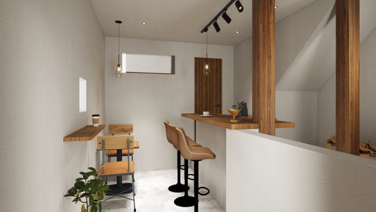 自伐型林業に携わる夫が焙煎するコーヒーを提供 。カウンター越しに会話が弾む設計にし、地域の憩いの場であるとともに、地域が抱える"山林の放置林化"や"担い手不足"といったの課題についても気軽に語り合える場を開きます。山をどうしたらいいかわからないという不安が、コーヒーを飲みながらの何気ない会話を通じて、少しずつ解きほぐされていく場を目指します。