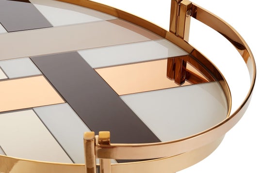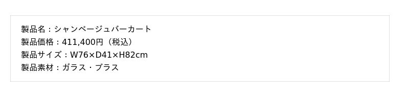 シャンベージュ・バーカートは、「モダンアメリカングラマー」の世界観を体現した移動式バーカートです。ガラス裏面への塗装で生まれたシャンベージュの光沢と、磨き上げられた真鍮のフレームが奥行きを生み、1970年代ニューヨークのグラマラスな熱狂を彷彿とさせます。バーカートは、キャスターつきで移動が自由なため、固定の家具にはない「部屋の使い方の幅」を広げてくれる一台です。来客のある日はリビング、普段はダイニングへと、場面に合わせて動かせます。使い込むほど深みが増す真鍮の経年変化も楽しみながら、長く愛せるインテリアです。