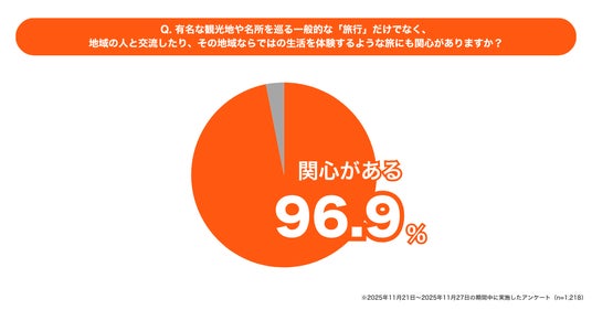 旅行費用が高騰する2026年、「高額な旅費を払って、一般的な観光など消費するだけの旅行」に、価格以上の価値を見出しにくくなっています。 以前当社が実施したアンケート調査(※)でも、96.9%が「地域の人と交流し、生活を体験するような旅に関心がある」と回答しました。旅費の負担を軽減するという経済的な側面だけでなく、旅の目的そのものが「観光」から、地域での「深い経験」へと明確にシフトしています。
