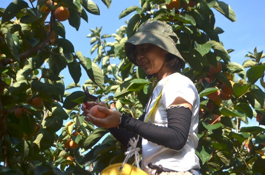 柿農家での収穫や選果作業