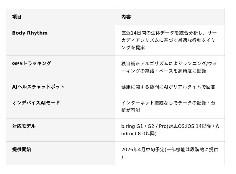 スマートリング「b.ring」、100万件の生体データを学習した独自AIヘルスモデルを搭載 ── 大型アップデートを4月中旬に実施