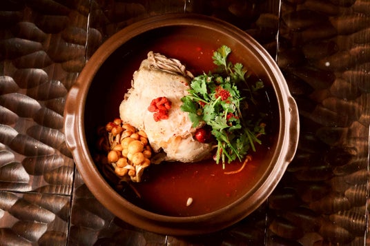 ランチタイムには、6種の薬膳参鶏湯からお好みの一品を選べるコースをご用意。
