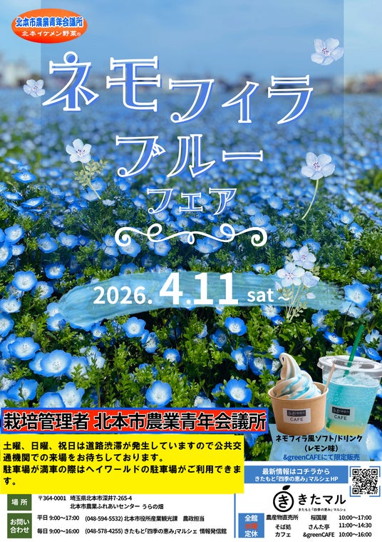 「きたもと『四季の恵み』マルシェ」裏で一面のネモフィラが見られます!