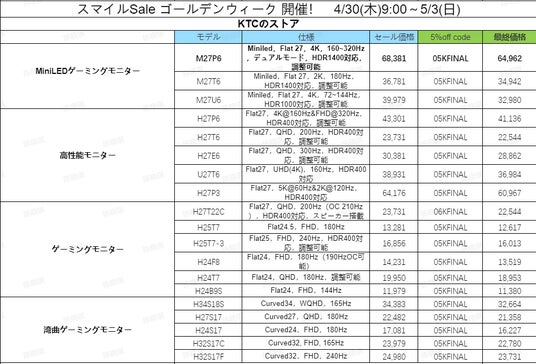 GWはKTCの特別セールをお見逃しなく。